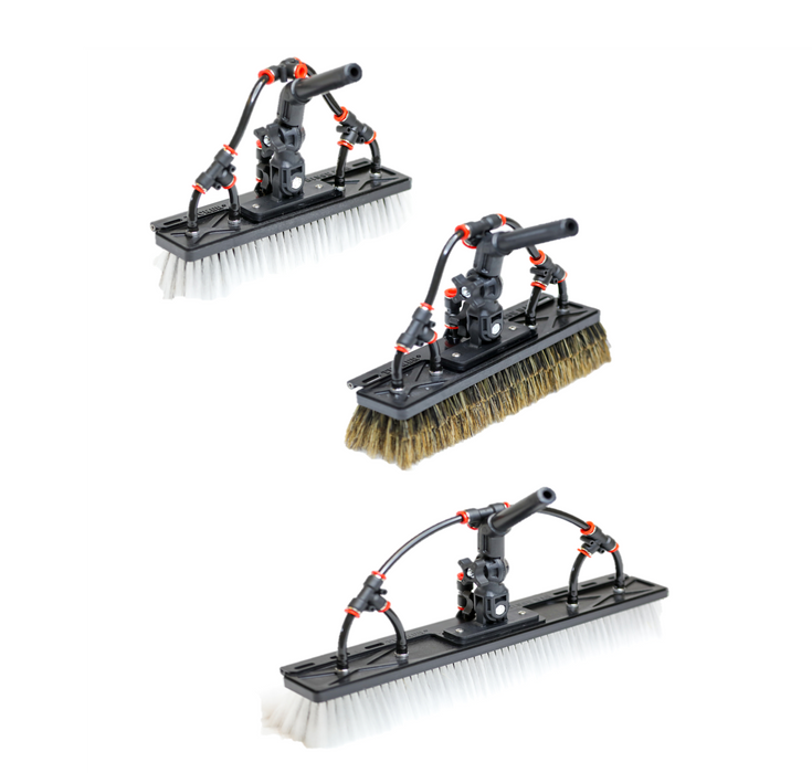 La brosse Tucker Alpha est le summum des brosses alimentées en eau et peut être ajoutée à n'importe quelle brosse Tucker pour bâtons en fibre de carbone. Il comprend la barre de rinçage supérieure ainsi que le col de cygne pivotant. Cette configuration permet une flexibilité totale dans le nettoyage selon votre style spécifique. Vous pouvez choisir de rincer directement à travers les jets de brosse internes, la barre de rinçage supérieure, ou en utilisant l'adaptateur en T inclus, vous pouvez utiliser les deux à la fois. Le col de cygne pivotant permet au professionnel expérimenté de faire basculer la brosse d'avant en arrière sur la surface de la fenêtre, tout en conservant le contact et la puissance de rinçage.