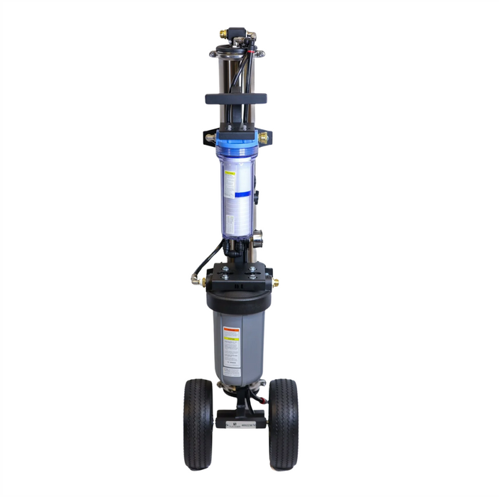 The RIVAL Cart is a 4-stage Pure Water system that comes on a powder coated lightweight steel frame made for years of abuse. The new Tucker® combination sediment/carbon pre-filter makes this a 4-stage filtration system! Large flat free tires help you navigate all terrains.